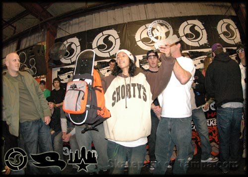 Tampa Am 2005 Sunday Awards Andrew Pott won the Zero Best Trick Contest with a big flip front board to fakie and a hard flip back lip