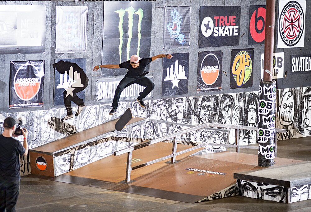 Brazilian past Damn Am winner Lucas Alves gets a Tre Noseslide during the semi’s.