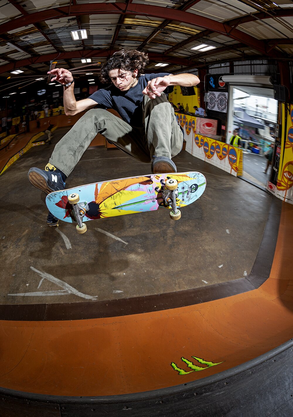 After a head on collision, Art Cordova prevails with a Frontside Flip.
