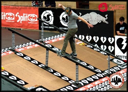 Tampa Pro 2005 Thursday Practice Mike Peterson - frontside boardslide on the flat rail