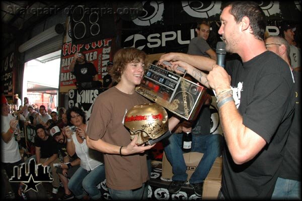 Ryan Sheckler got a concussion in his second run. He still took his third after that, though. He won the Skateboarder Mag Worst Slam Award for that