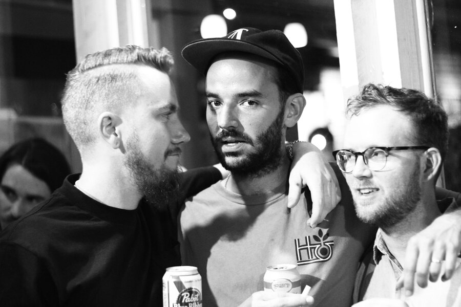 A few drinks and a few close talkers. Mikah Collins, Joe Pelham, Pat Stiener.