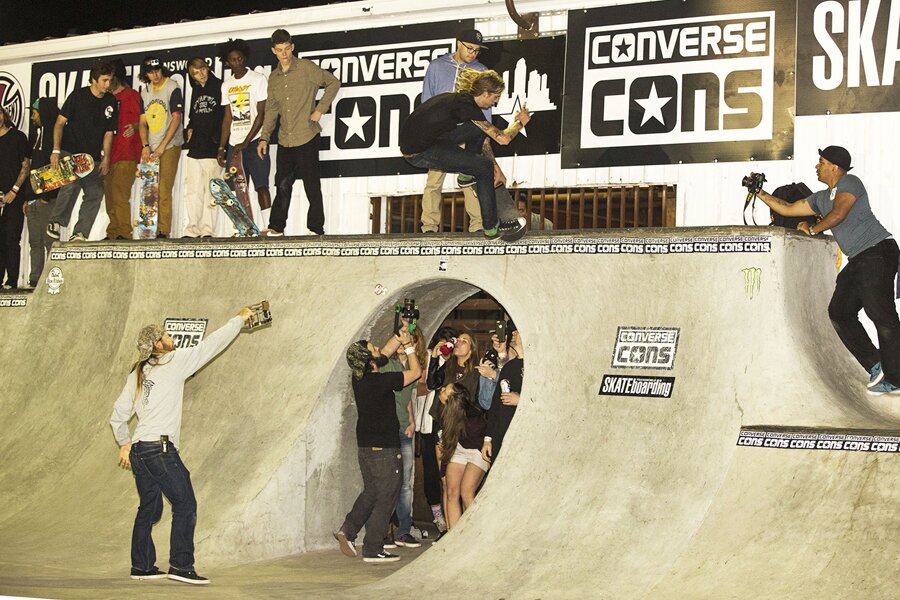 Converse and Transworld were giving out cash for tricks during the Concrete Jam. Chris Gregson took home a lot of loot. FS Nosegrind grabs like this are the reason why.