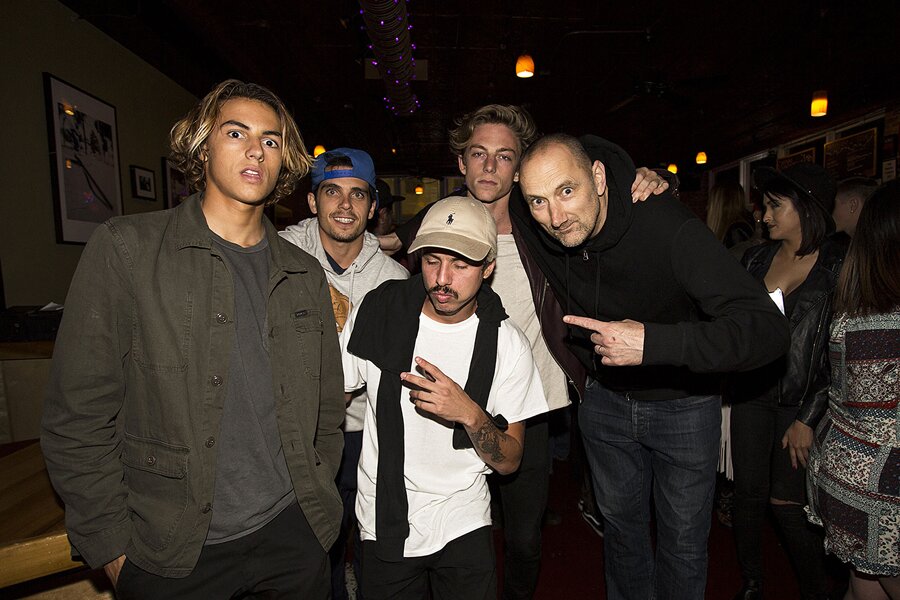 Flip team in the house: Curren Caples, Luan Oliveira, Ben Nordberg and Ian Deacon. Luan invented a new camera pose - the sleepy peace sign.