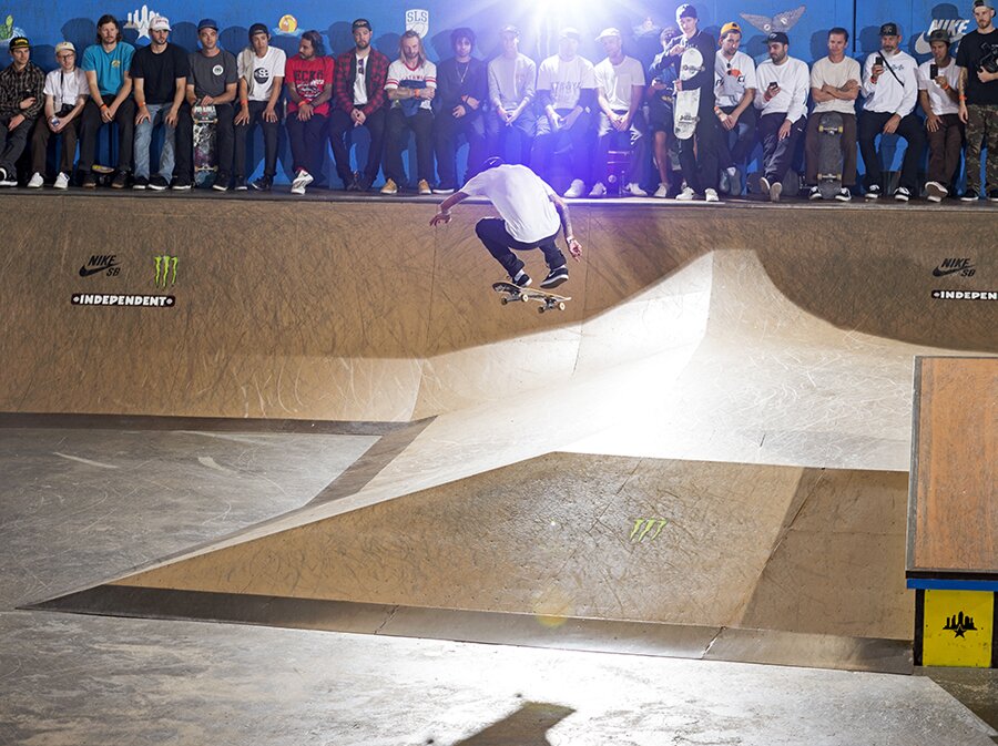 Luan Olivera kicks off Finals quite literally with a Nollie 180 Kickflip.