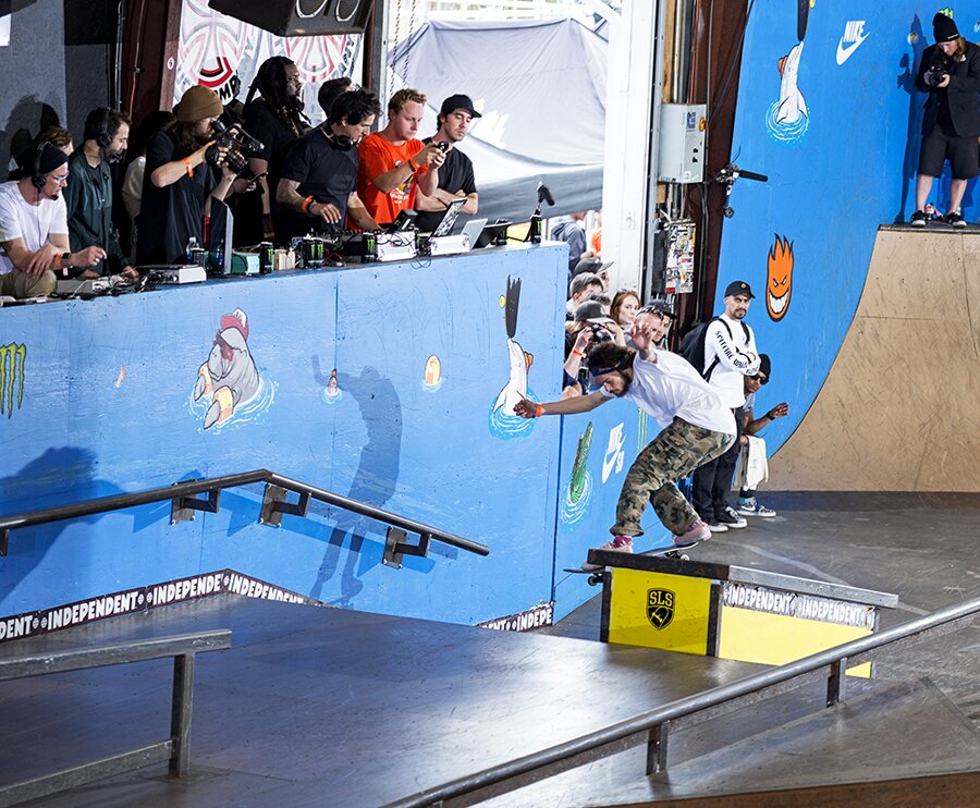 Torey Pudwill also warms up by goin’ up with a BS Smith.