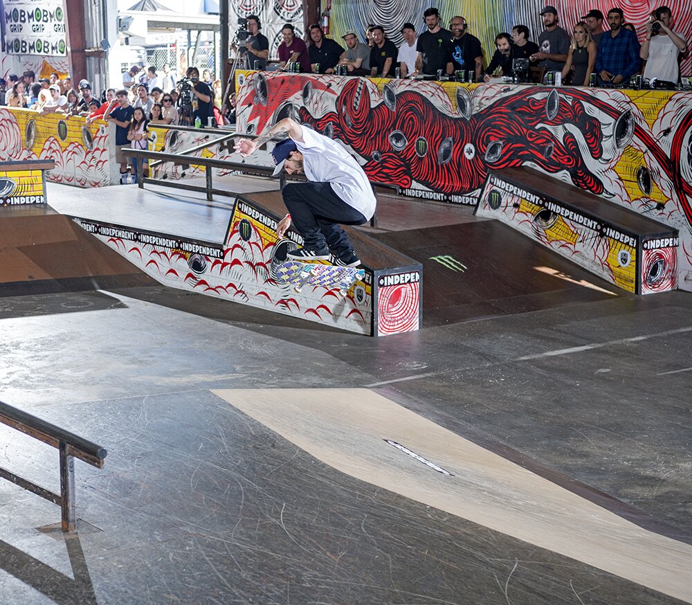TJ Rogers requested some coliseum jams and got the crowd goin’ with this Nollie Backside Flip.