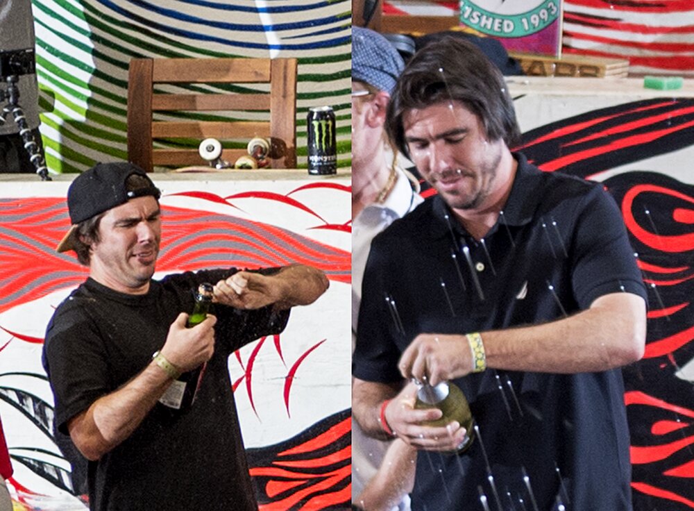 Kelly Hart is a great skateboarder and talk show host, but for the last two years in a row the guy cannot seem to get a bottle of Champagne open.