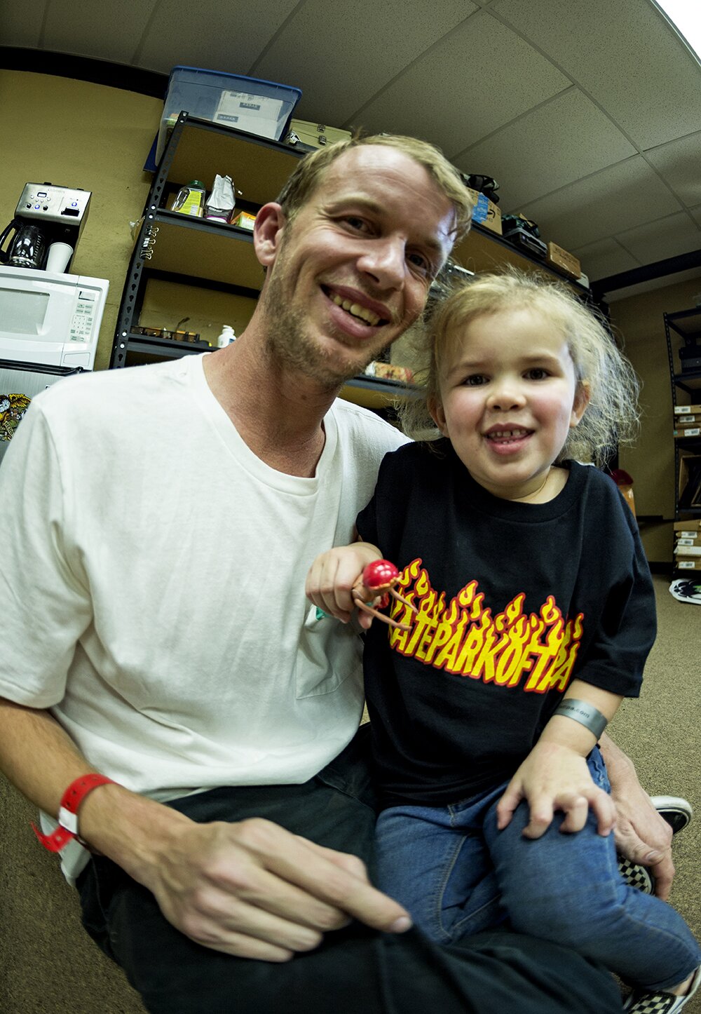 Frank Branca does a little daddy day care between filming lines.