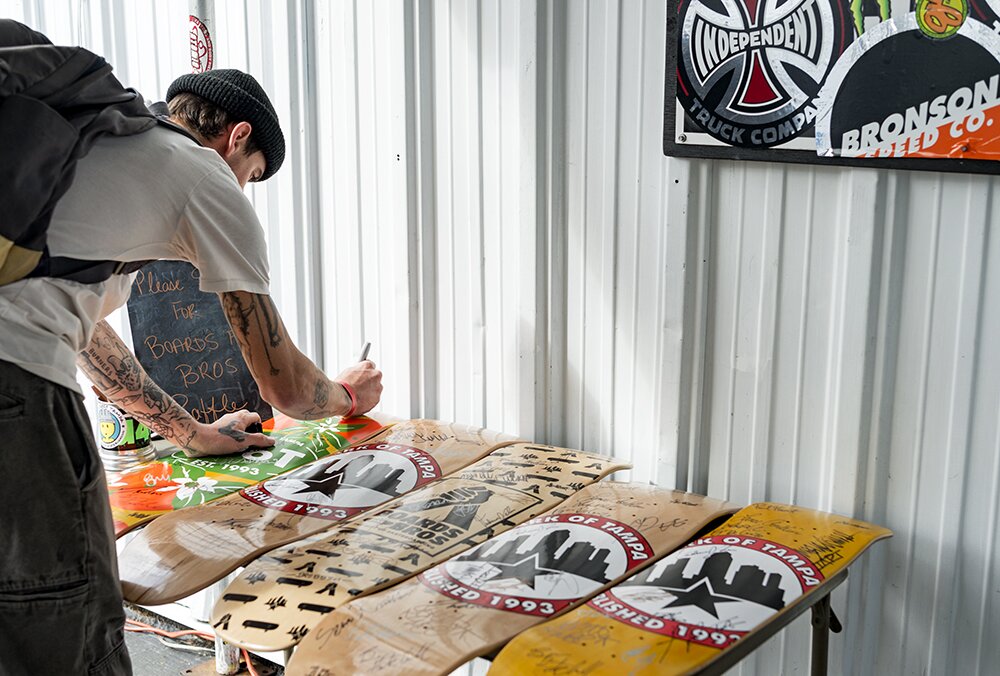 Always good to see the pros doin’ some signage for Boards For Bros.