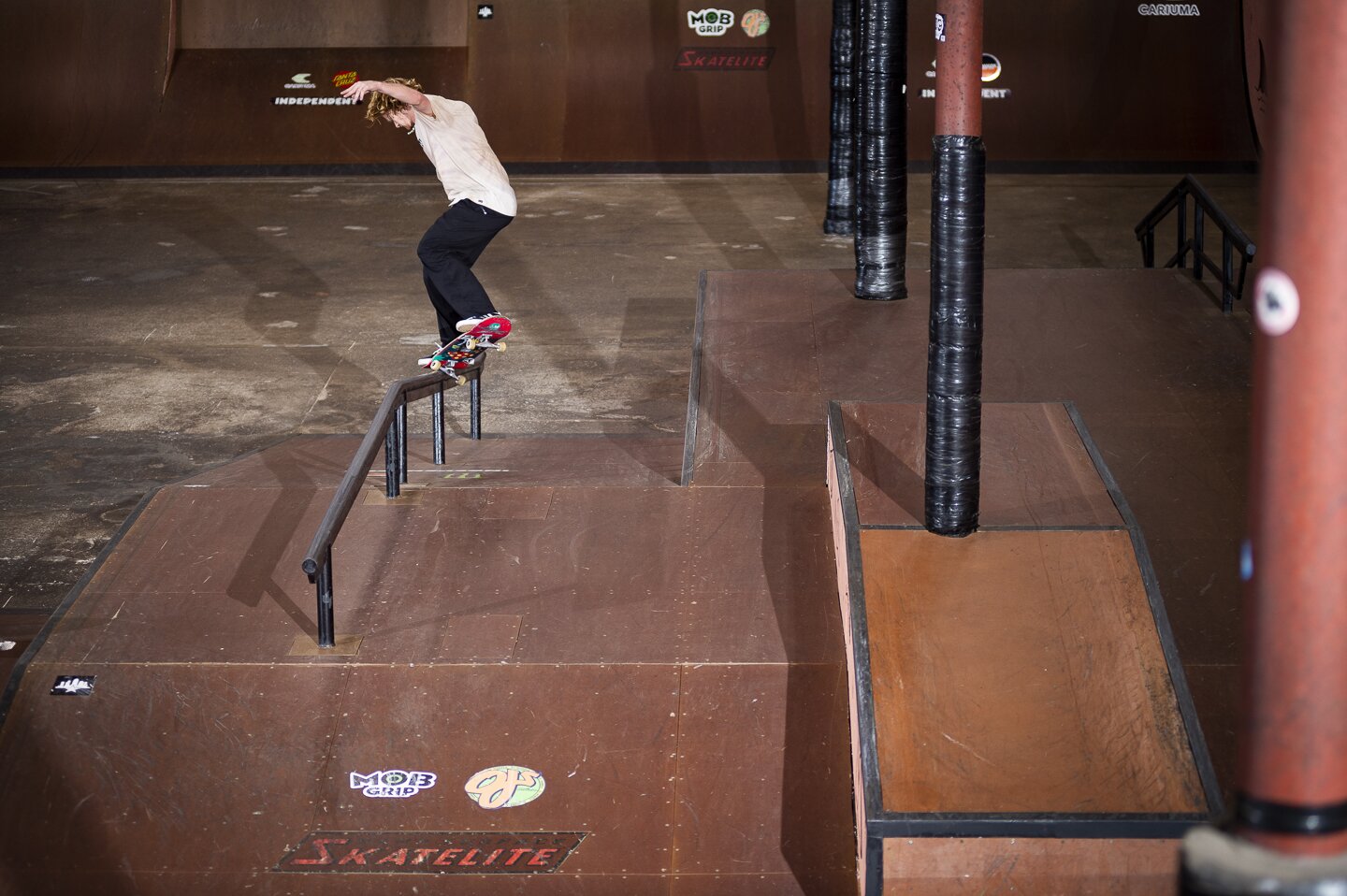 Alec Majerus pinches a loaf of a Front Crook down the thee rail.