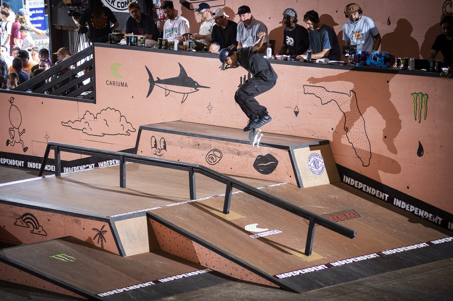 #1 Golden Ticket winner Felipe Gustavo warms it back up with Nollie Flip Crook.