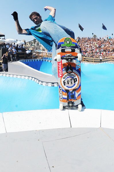 Thanks Bob Burnquist for skating the Qualifiers the day before. This is a blunt fakie on the shark.