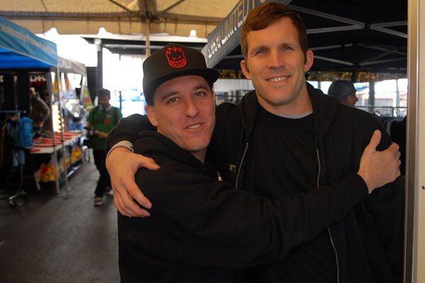 Two Florida pros now part of Florida skate retail. John Montesi from Westside and Ed Selego from MIA. The pose is looking a little suspect, but when you've been friends this long, it's okay to show the love.