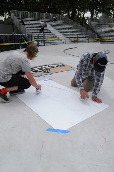 Thursday at Maloof Money Cup: Check-In and Course Construction The Volcom tag team, Jake and Remy.