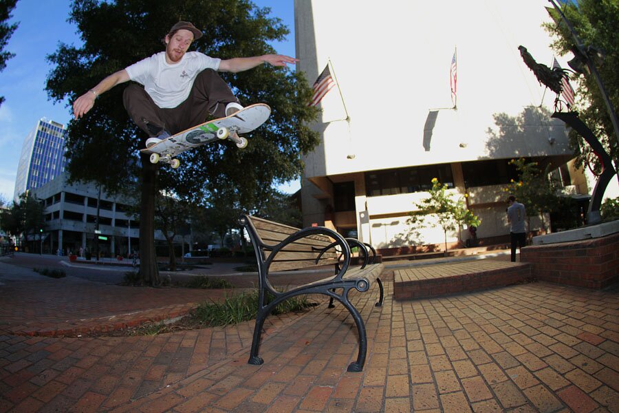 You may remember this bump to bench from Reynolds' SOTY part, but years later it got moved a little. Ben Gore wasn’t afraid to get his feet wet on this Ollie.