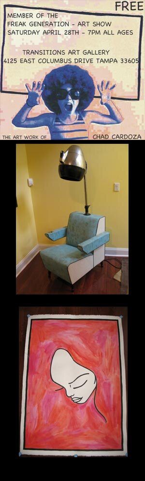 This Saturday there is an art show in Transitions featuring Chad Cardoza's work