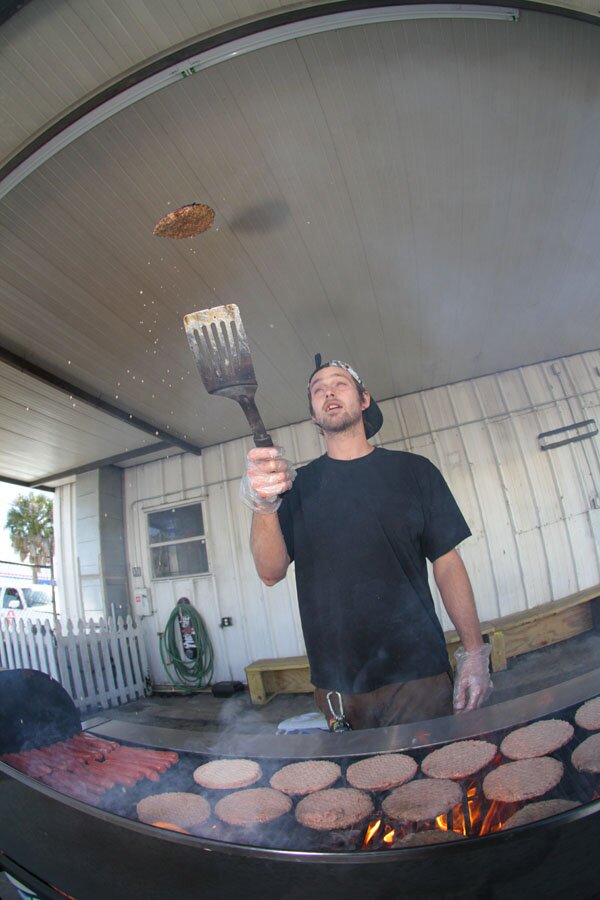 After 13-15 we took a small break. That's Josh Knight, grill master, flipping burgers.
