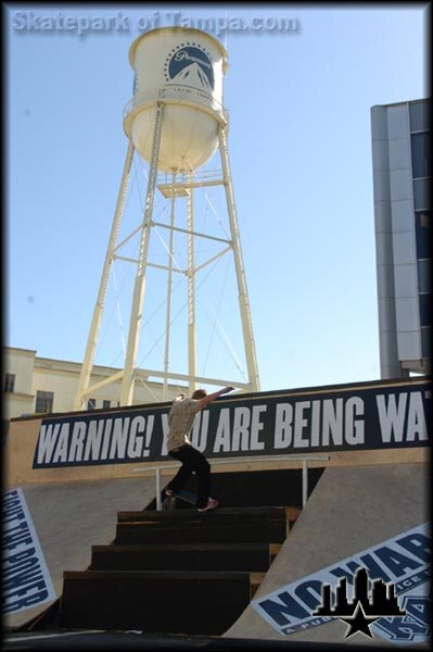 Vans Downtown Showdown 2006 That's Dennis Busenitz frontside nosegrinding at the base of the Paramount Studios water tower