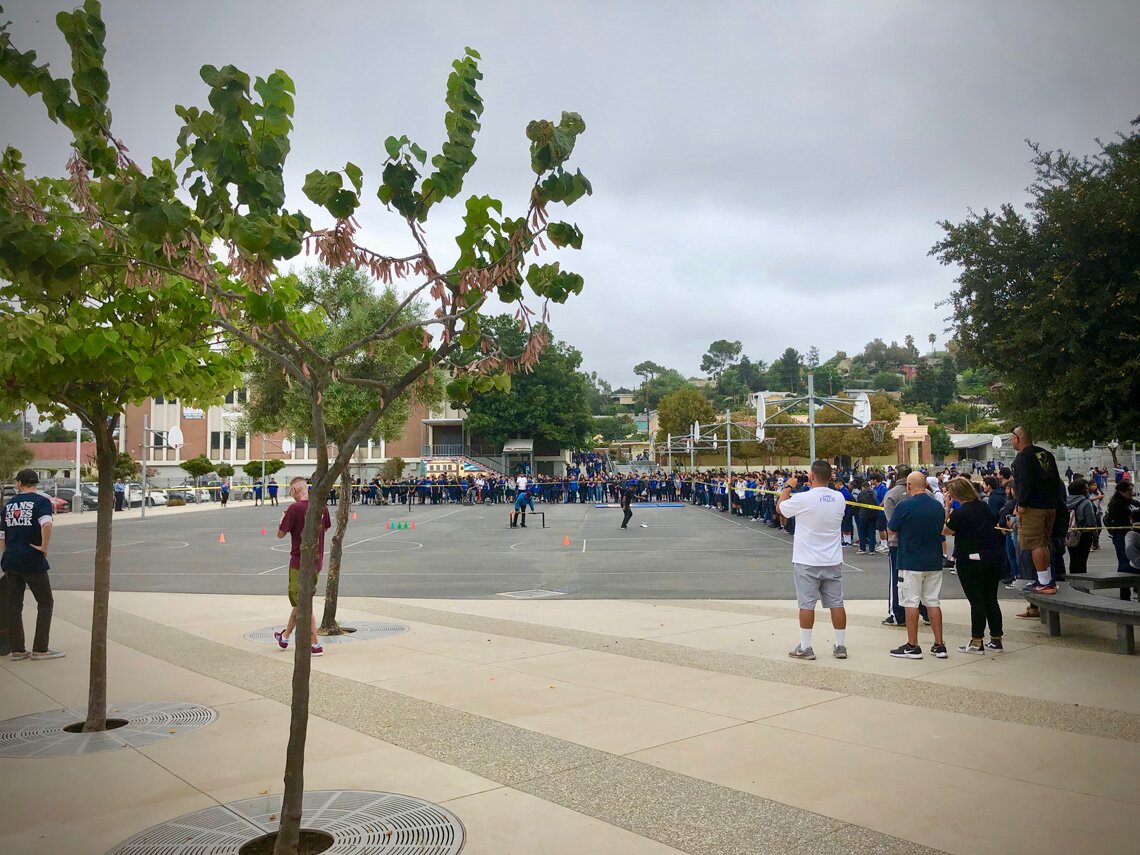 Nothing like an unscheduled demo when the students and staff gathered in between periods to check out what we were setting up! Thanks to Luther Burbank Middle School for having a beautiful, smooth basketball playground for us to skate!