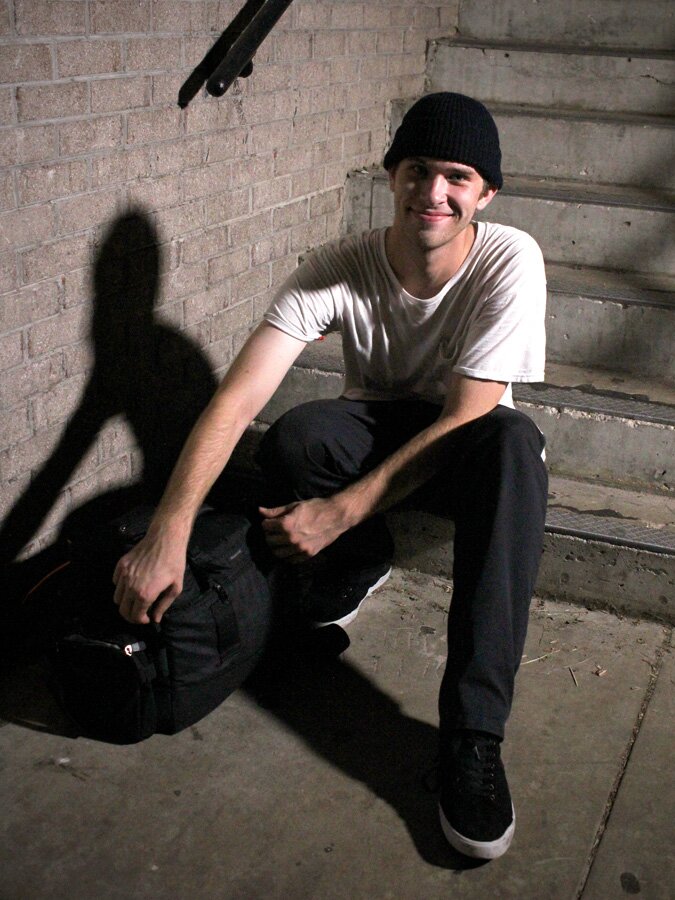 Tristan just after filming the last trick in the video. Look at that smile of relief!