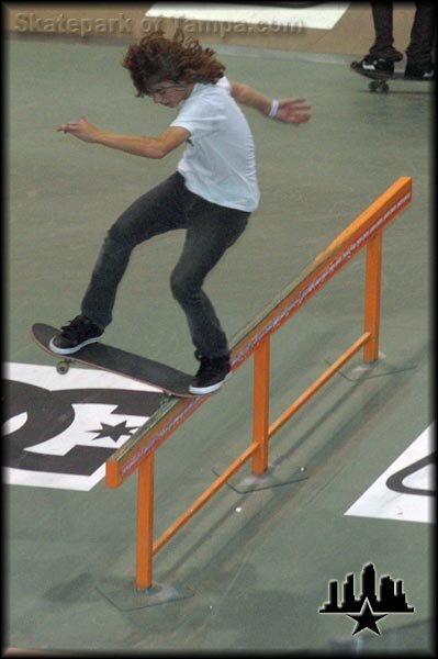 West 49 Canadian Open 2005 Antoine Asselin is doing a frontside noseblunt slide here. He gets the best hair of the weekend award, chick division included