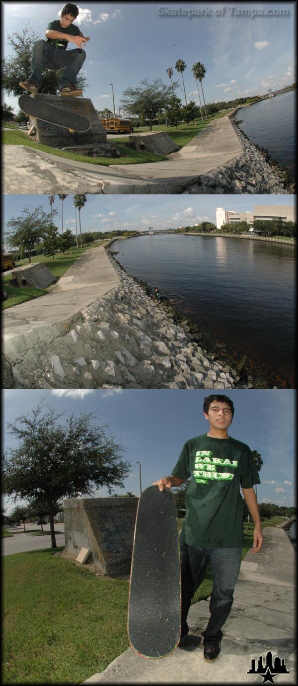 Yonnie Cruz - fakie flip to board in the water to him in the water right after. It is extra sketchy where I'm standing. We almost had photo guy in the water, too
