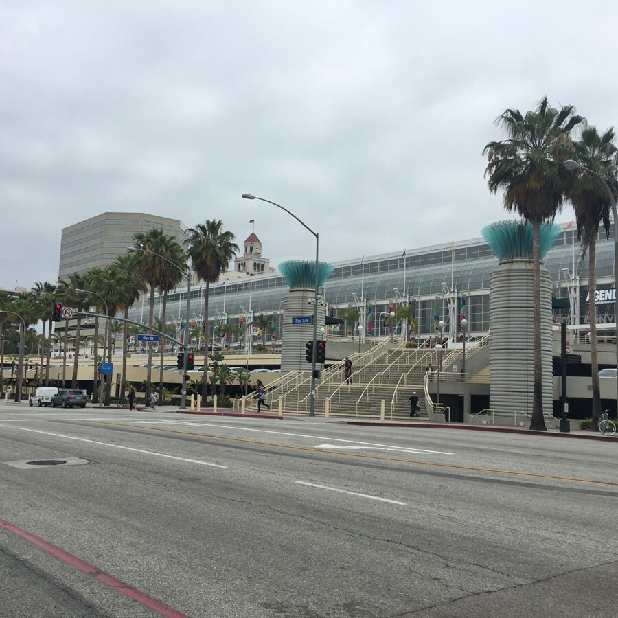 The front of the Long Beach Convention Center. Muska ollied down each of the stair sets out front about 20 years ago. Still sick.