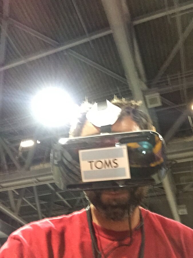 Back inside…I was surprised how hard it was to take a good selfie while wearing a virtual reality headset. But it was worth the trouble to see how cool I looked. This photo brought to you by Toms.