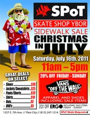 This week's it's been a year since Schaefer rolled the dice. This wasn't any back alley cee-lo dollar game of dice for your homie's lunch money. This was a king-sized, financial life-on-the-line type of dice roll, similar to the one back in 1993. SPoT Skate Shop Ybor and The Bricks are a year in business now. That's still very young and unpredictable, but longer than most make it. We're celebrating with a party but there's also a huge sale down there in the Ybor Shop. From Friday through Monday, we'll have all Vans and Ergo stuff 20% off, including things that are already on sale. Additionally, we'll have a bunch of deals similar to our Black Friday shindig. That's why we're calling it Christmas in July. See you on the sidewalk with your Festivus pole.