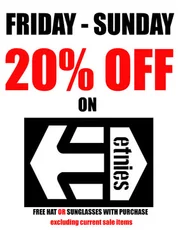 All regular price etnies stuff is 20% off this weekend while the etnies team is at SPoT. On Saturday, come skate with Ryan Sheckler, Sean Malto, Tyler Bledsoe, Willow, Jose Rojo, and Ryan Pearce. If you have a donation for Boards for Bros, skating is free with free food and drinks, too. Thank you etnies. We should all be paying 20% extra for this, but instead, they hooked up 20% off.
