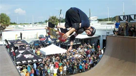 Tony Hawk and the Birdhouse crew were at Skatepark of Tampa yesterday, but Schaefer and I didn't get home in time to see them. Pelham has photos and video coming up soon. For now, FSG Mag cover alumni Kyle Randall has this photo of Tony skating the vert ramp the opposite way everyone else does.