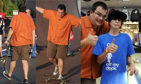 Mall grabbing news guy, plus half pike, plus Tommy Hawk impersonation = guaranteed accident. The star of the normal news your dad watches was attempting to cross the vert ramp and ran into Cody here. They both went down, large guy fully on top of small guy. They're both ok. Dylan Perry has the footage that could be YouTube clip of the year. Not sure if they'll show the footage of the collision on the news.