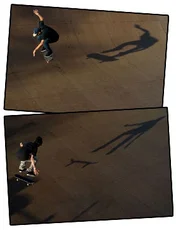 Some long shadows get cast as the sun sets each day on the vert ramp. The locals are always on a flatground session. I spied from above for a bit: Vert's Not Dead, It's Flat.