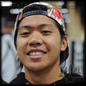 Wow, Aldrin snapped it clean right after that Maloof girl's back door adjustment. Congratulations to Aldrin at the Maloof High Ollie Challenge. Aldrin is 67 inches tall. More coverage coming soon.