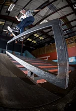 Caveman to boardslide sequence down a 2 flat 3 double set for the Crops feature. .