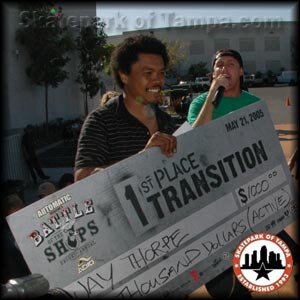 Battle of the Shops: Tranny, Saturday, October 20, 2007, placed 7 out of 21 skaters.