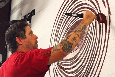 Andrew gets started with the wall behind the judges stand.