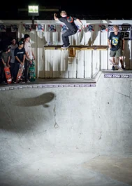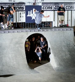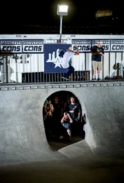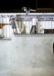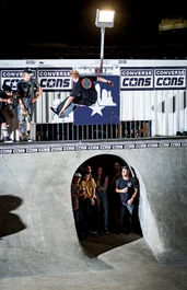 After a really gnarly hangup, Roman Pabich flipped a switch and proceeded to destroy every corner of the Concrete Course he could find, turning into some kind of higher form of skater. Afterwards he floated up to the top of the Quarterpipe on a cloud of smoke and took this pose.