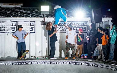 Ethan DeMoulin, the fire starter.. once again gets things started but this time its the Converse Concrete Jam with a Back OVercrook over the door.