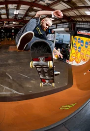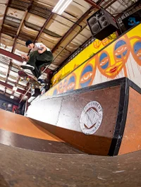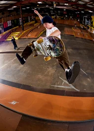 After a head on collision, Art Cordova prevails with a Frontside Flip.