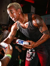 Brian throwing a can of After Sesh by Cigar City Brewing into the crowd. They are ALL 21 years of age.
