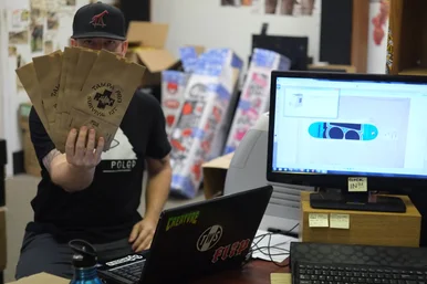 Back here in Innetech where we run the retail side of things, it's bid'niss as usual during Tampa Pro with a few extra jobs thrown in. Chris Preston is helping Casey make the Tampa Pro Survival Kits that everyone in the Contest is getting.
