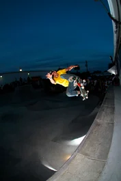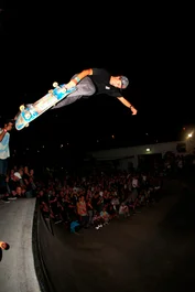 Jake Ilardi with a huge Varial Flip over the key hole.