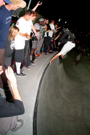 Paul Zitzer handing out cash for the top 5 tricks over the door gap, thanks to Converse.