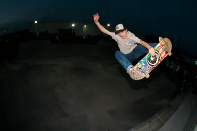 Jake "Poptart" Welch is known for destroying the concrete. This Nose Grind pull out was easy for him.