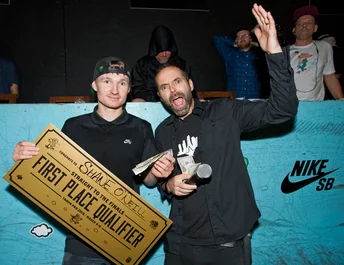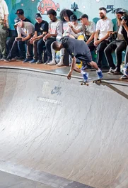 Next order of business, Independent Best Trick Contest; Felipe Gustavo gets things started with a not so mellow Switch Back Tail Shuv Out.