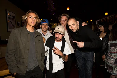Flip team in the house: Curren Caples, Luan Oliveira, Ben Nordberg and Ian Deacon. Luan invented a new camera pose - the sleepy peace sign.