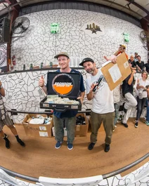 Felipe threw his board into the crowd so we got a photo of the dude that caught it!
