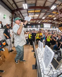 Michael Blanford and the Boards for Bros crew getting ready to name their Bromander.